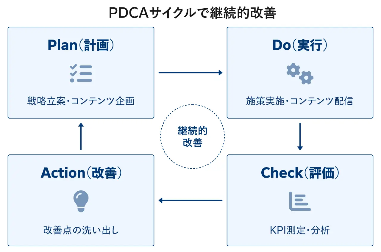 コンテンツとシナリオは作って終わりではありません。開封率・クリック率・閲覧数などのデータを計測し、効果を確認して改善を繰り返しましょう。