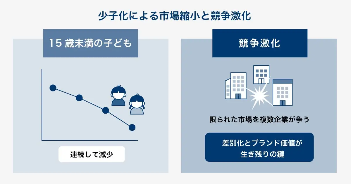 学齢人口の減少により、学校向けサービスや教材の市場は大きな成長が期待しにくい成熟市場となっています。限られた市場を、複数企業が争う構図です。