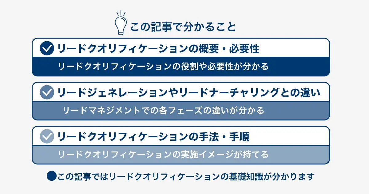 本記事では、リードクオリフィケーションの基礎知識をまとめて解説しました。最後に、この記事の内容を簡単に振り返ってみましょう。