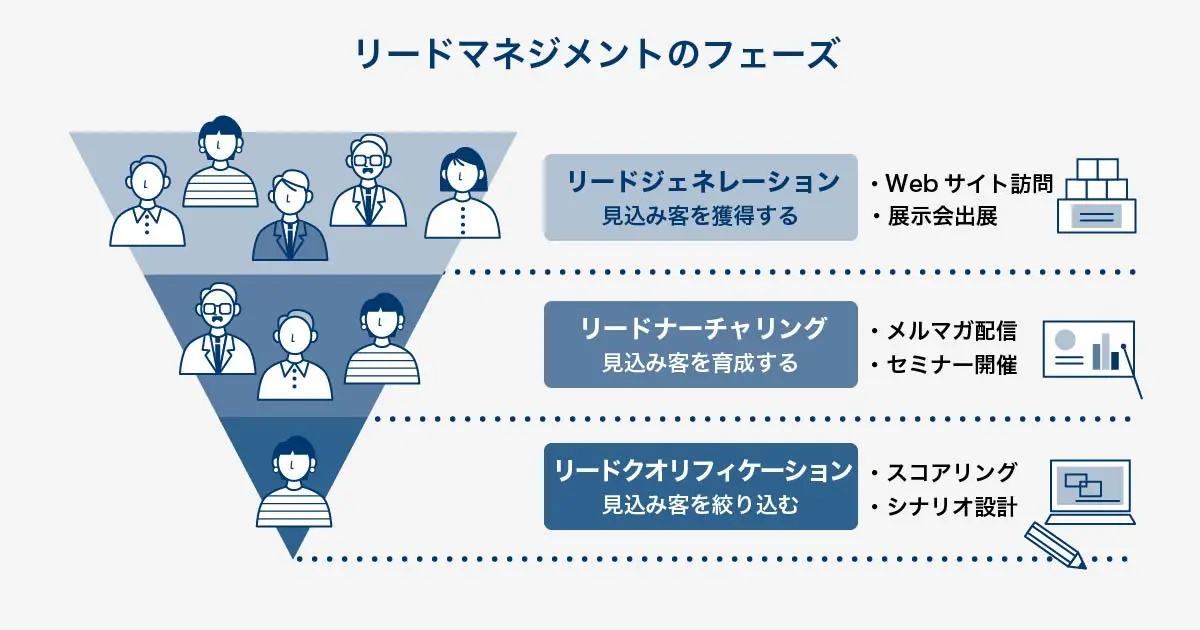 - リードジェネレーション:見込み客を獲得するフェーズ
