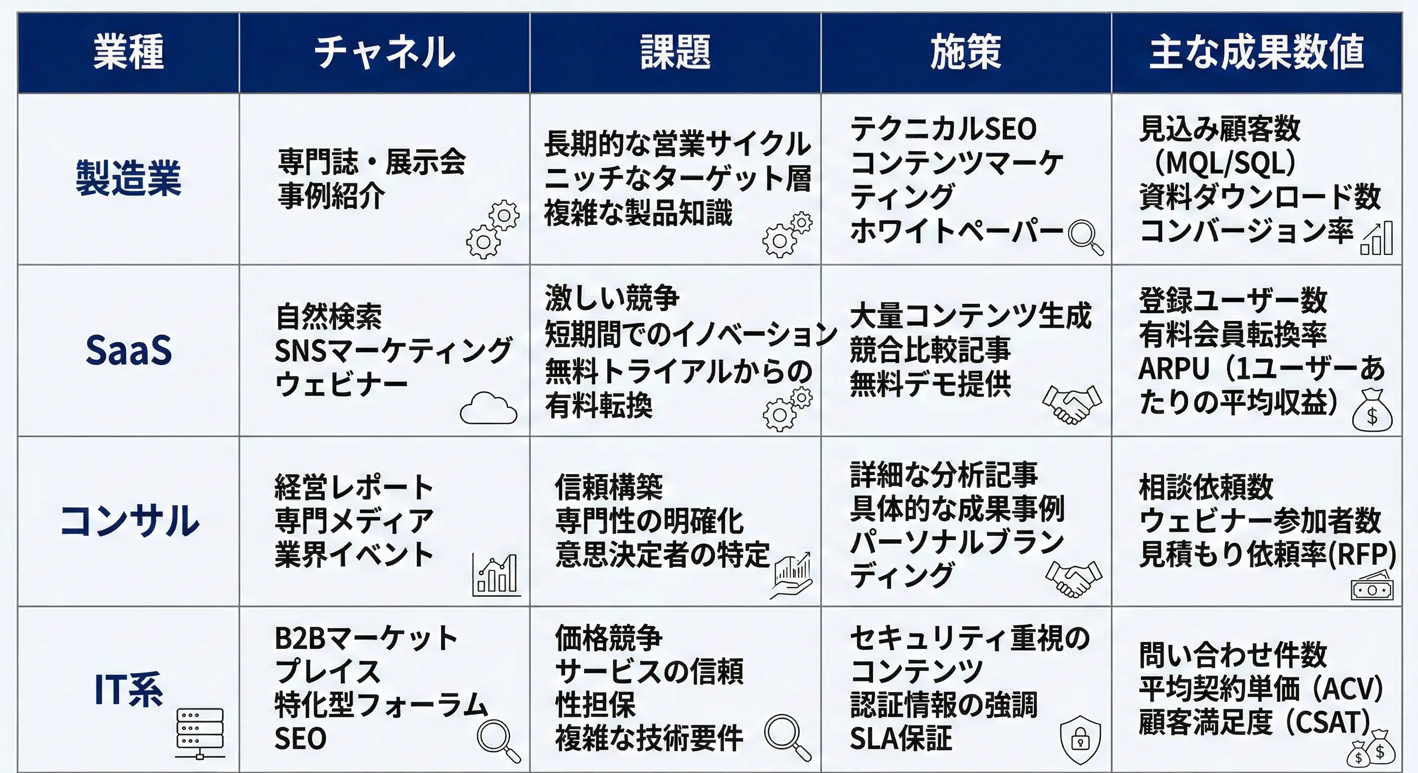 創業5年目のSaaS企業と、製造業の第二創業期企業では、そもそも「リード」の定義も、チャネルの優先順位も、MAツールの活用レベルも異なります。事例を読む際は、「自社と状況が近いか」を最初に確認することが不可欠です。
