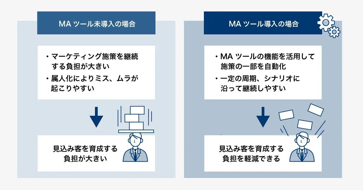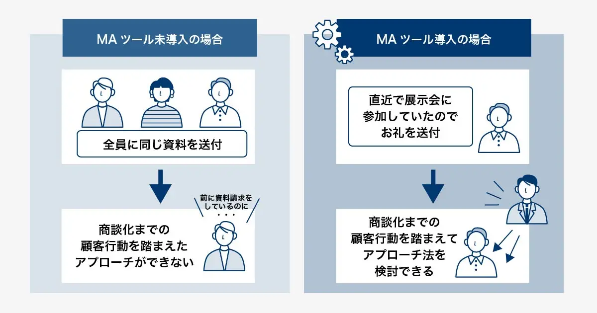 見込み客との接点を増やすだけでなく、接点ごとの提供価値を最適化できる点がMAツールを活用する大きな効果と言えるでしょう。