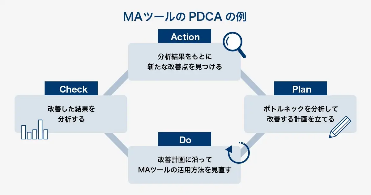 | ステップ8:本格運用をしてPDCAを回す | 運用開始後にはPDCAを回してMAツール運用の精度を高める |