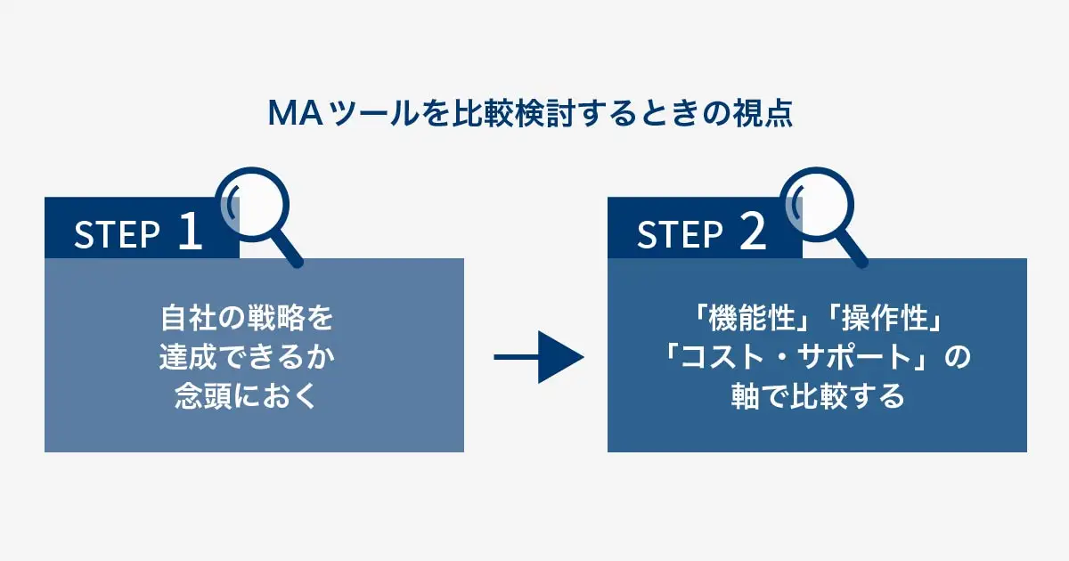 そのうえで「機能性」「操作性」「コスト・サポート」の3つの軸で比較すると、MAツールの絞り込みがしやすくなります。
